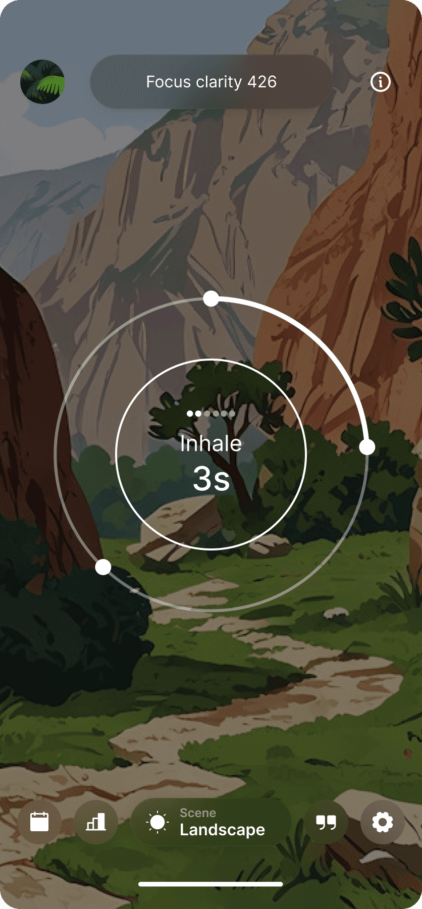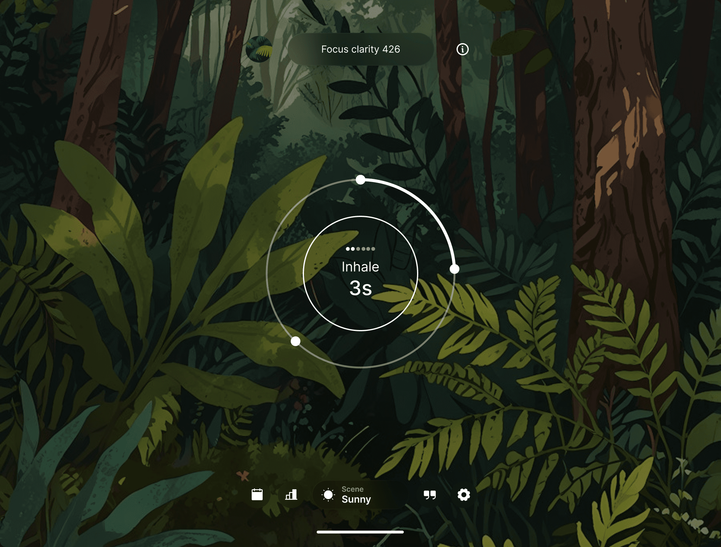 Guided Breathing Exercises Over 20 exercises tailored for relaxation, energy, focus, and more. Duration and intensity are customizable.